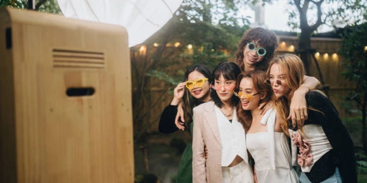 Unlike enclosed booths, open-air booths allow more guests, custom backgrounds, and professional studio lighting.